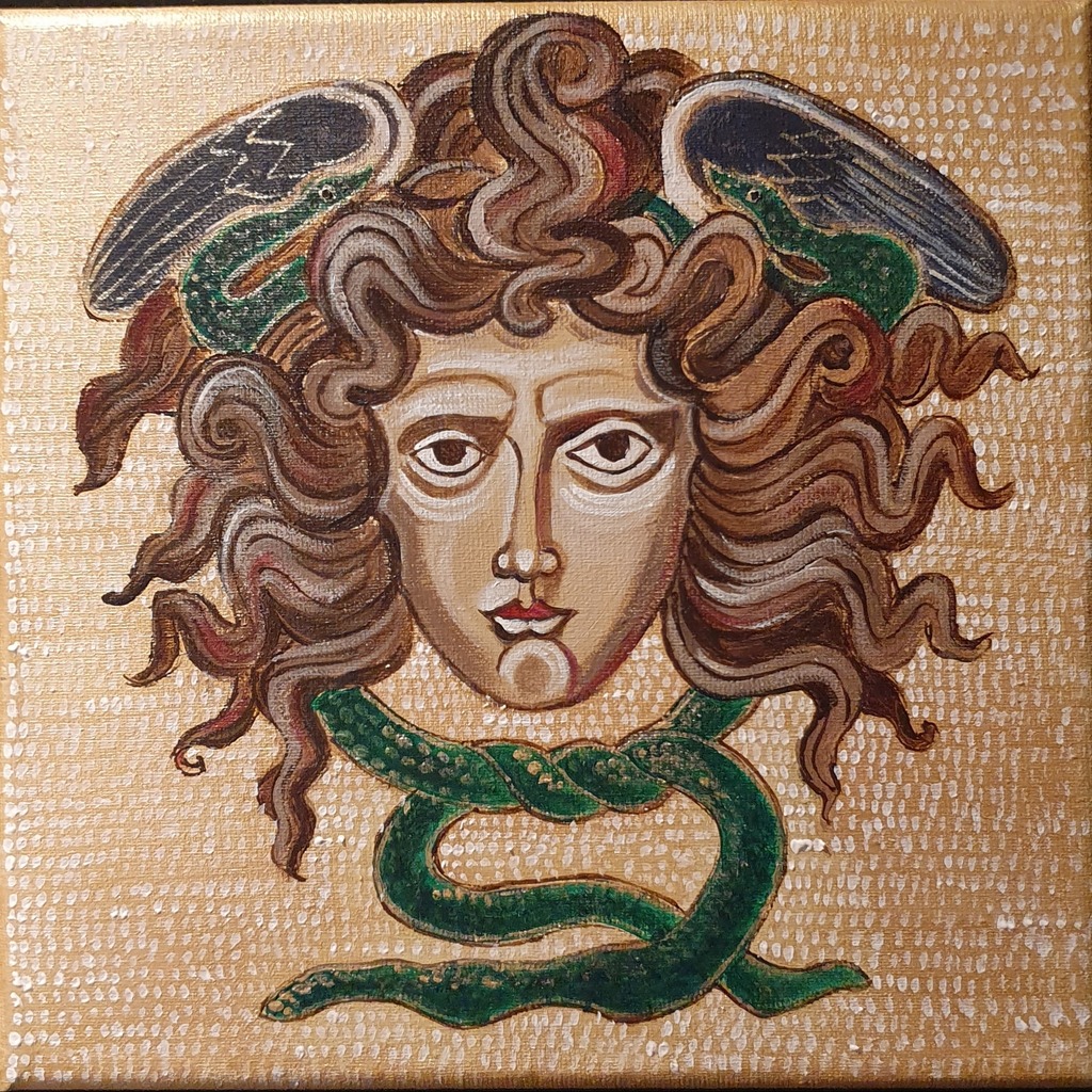 Μέδουσα, guardiana, protectora)1 era un monstruo, una gorgona, generalmente descrita como una humana alada con una cara horrenda con serpientes vivas en lugar de pelo.